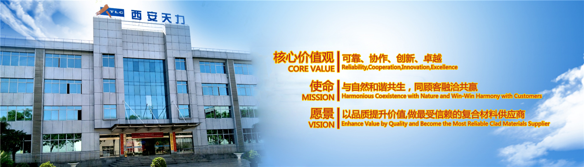 西安天力金屬復合材料股份有限公司是西北有色金屬研究院(集團)產(chǎn)業(yè)化上市公司“西部材料”控股的獨立法人公司,是專業(yè)從事層狀金屬復合材料研究及生產(chǎn)的高新技術(shù)企業(yè),成立于2003年12月25日,位于西安經(jīng)濟技術(shù)開發(fā)區(qū)涇渭工業(yè)園,注冊資本10895萬股,擁有生產(chǎn)廠房23000余平米,各類生產(chǎn)設備200余臺套及兩塊條件優(yōu)越的爆炸復合場地,形成年產(chǎn)25000噸層狀復合材料的生產(chǎn)加工能力……